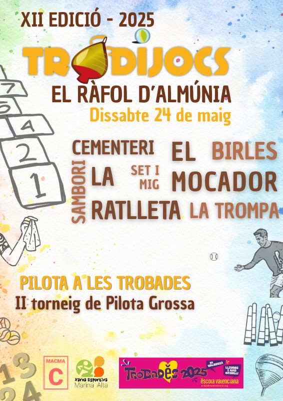 La MACMA ha recuperat els Tradijocs, que no s'organitzaven des de 2018, després que se signara aquest mateix any un conveni de col·laboració entre la MACMA i Escola Valenciana per a promocionar els jocs tradicionals i l'esport de pilota valenciana a la Marina Alta.