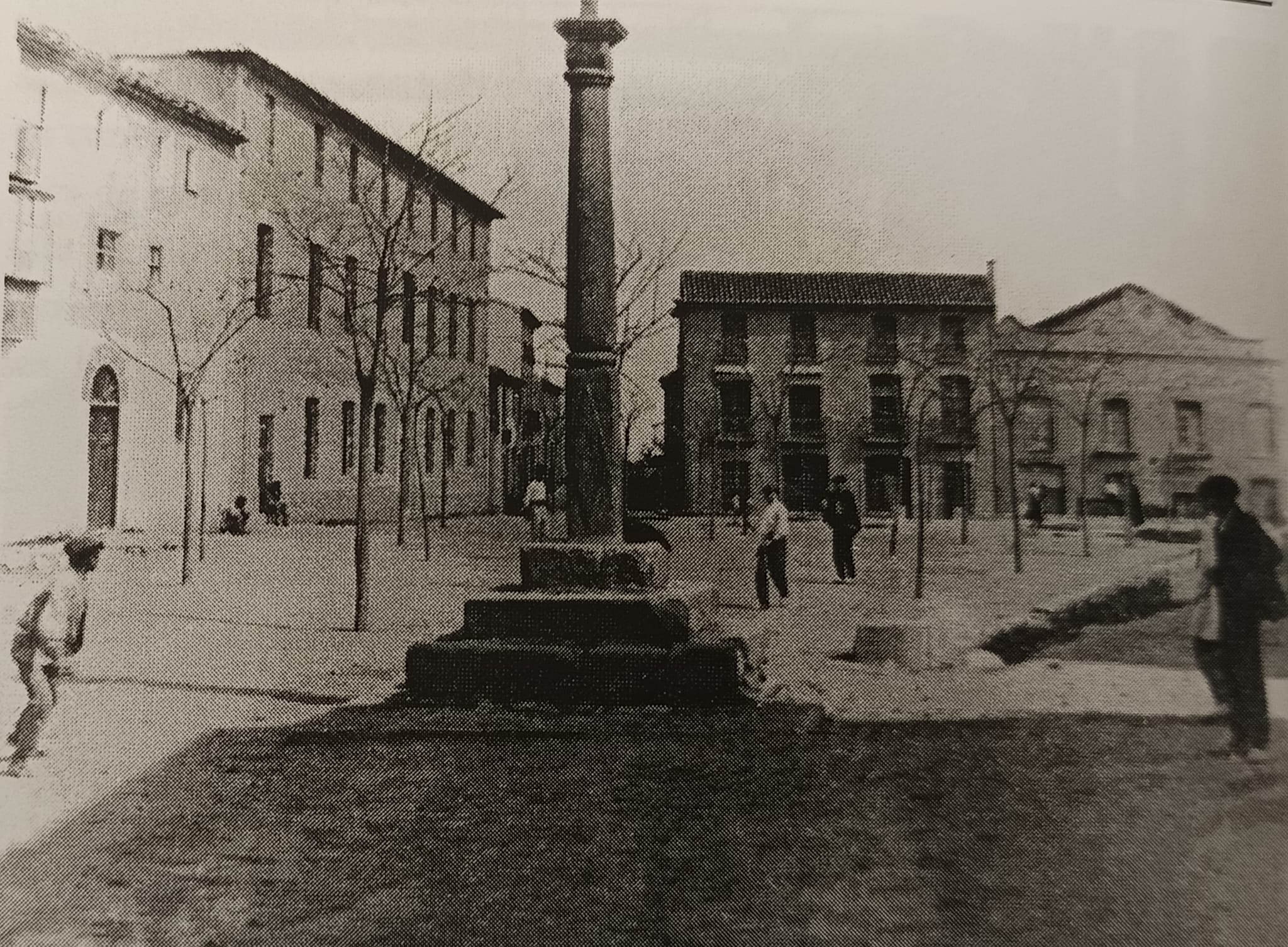 Imatge de la plaça del mercat abans de la guerra, amb el cine Pathé al fons. Font: T. Ballester (2006).