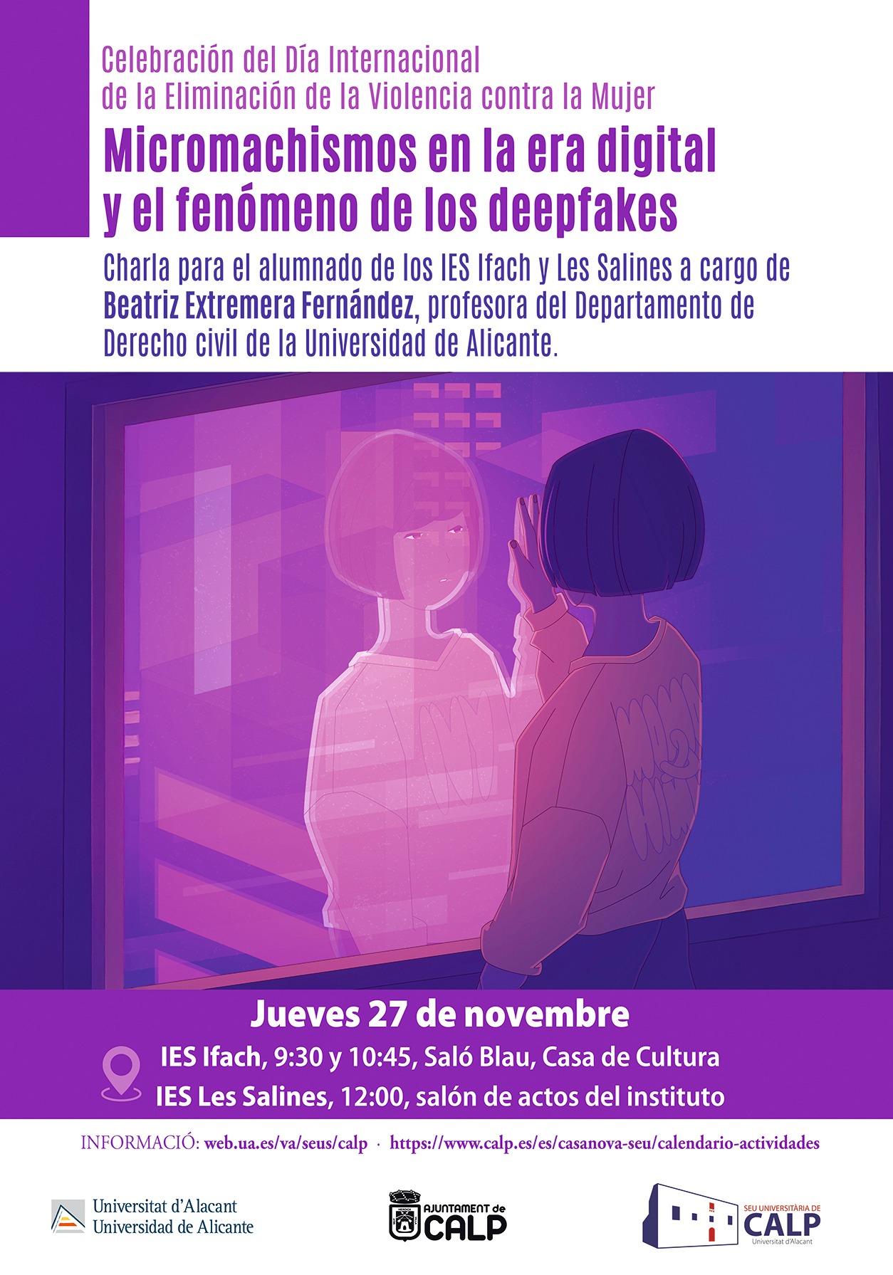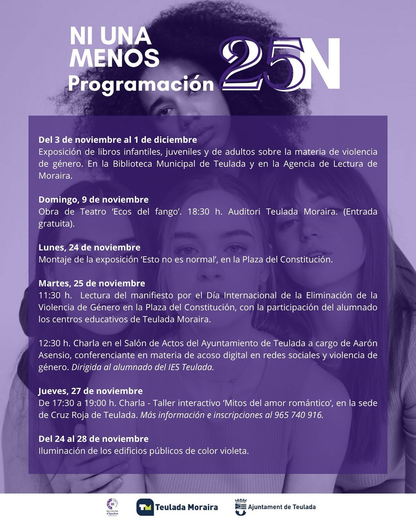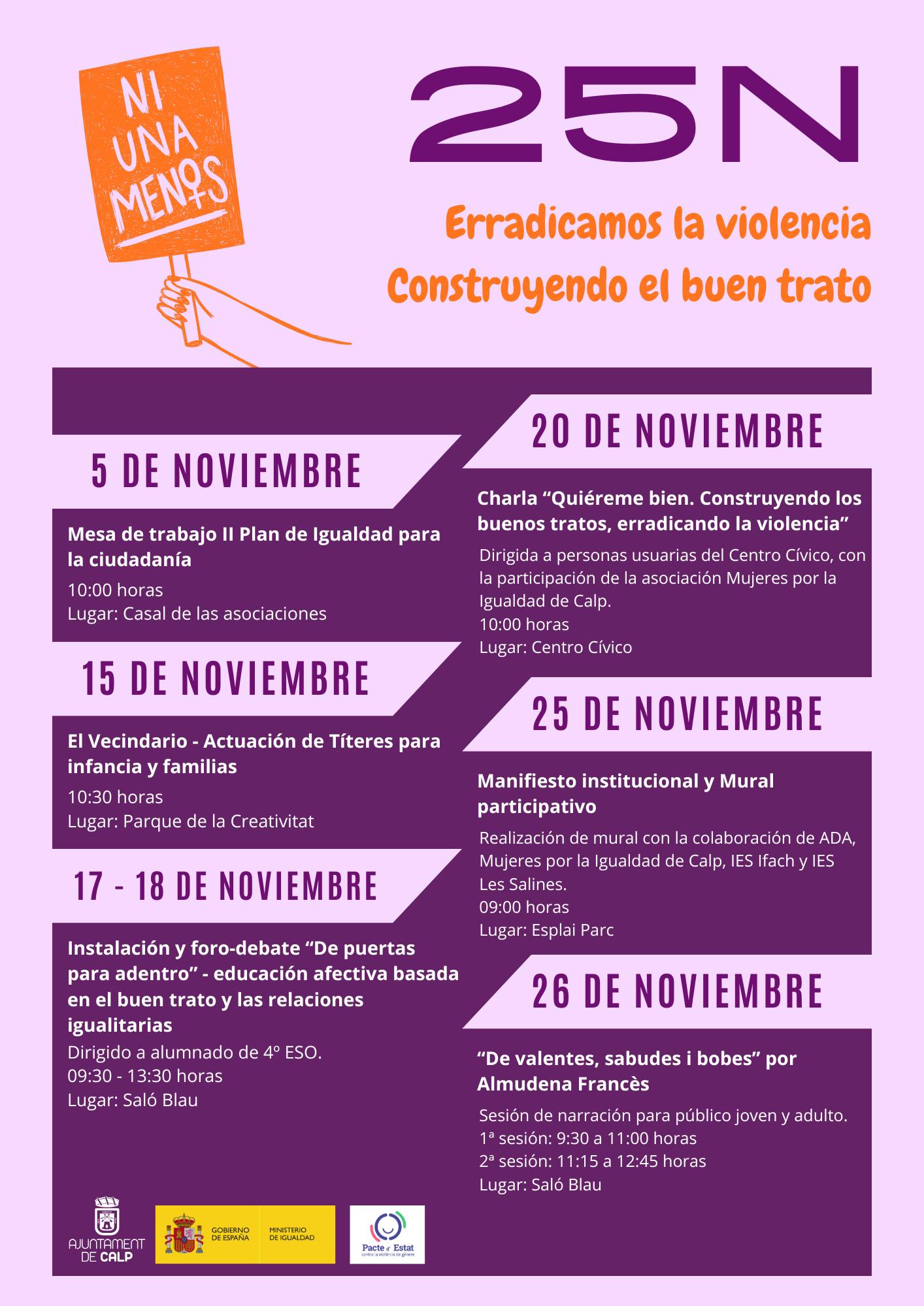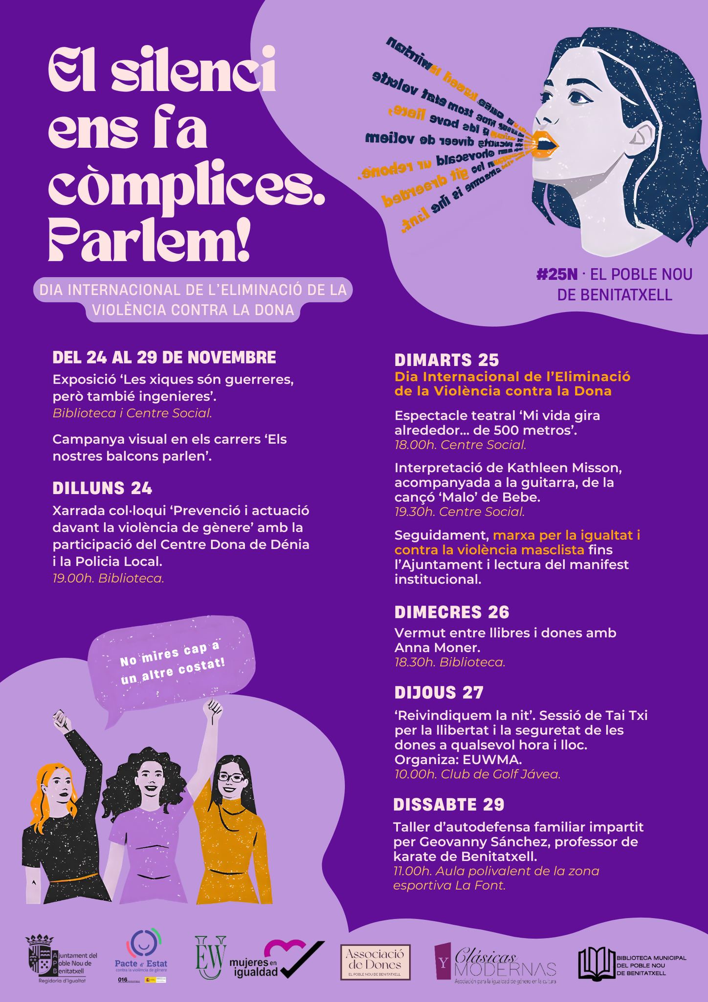 Durant el mes de novembre, a la Marina Alta es posa el focus en la lluita contra la violència masclista i dona visibilitat a aquesta problemàtica social mitjançant una sèrie d’activitats i iniciatives de sensibilització, reflexió i participació ciutadana, organitzades al voltant del 25 de novembre, Dia Internacional per a l’Eliminació de la Violència contra les Dones.