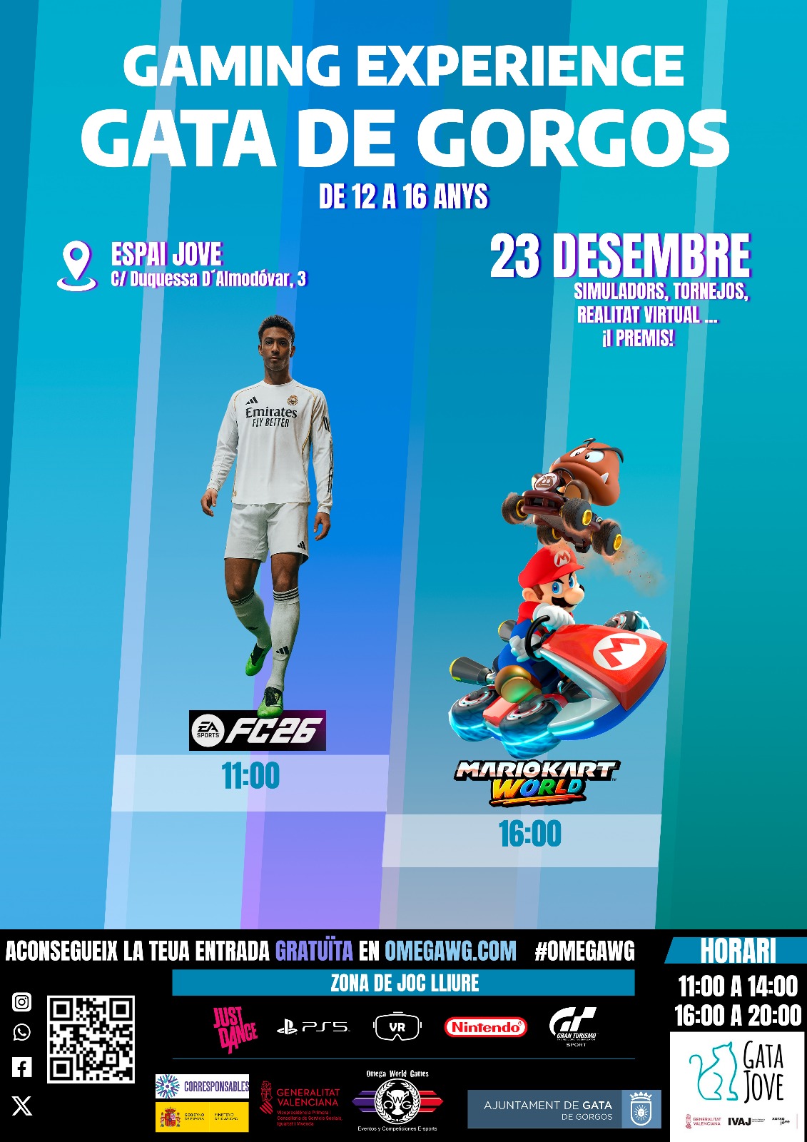 - Dimarts 23 de desembre, Gaming experience, de 10:00 a 14:00 h i de 16:00 a 20:00 h a l'Espai Jove.