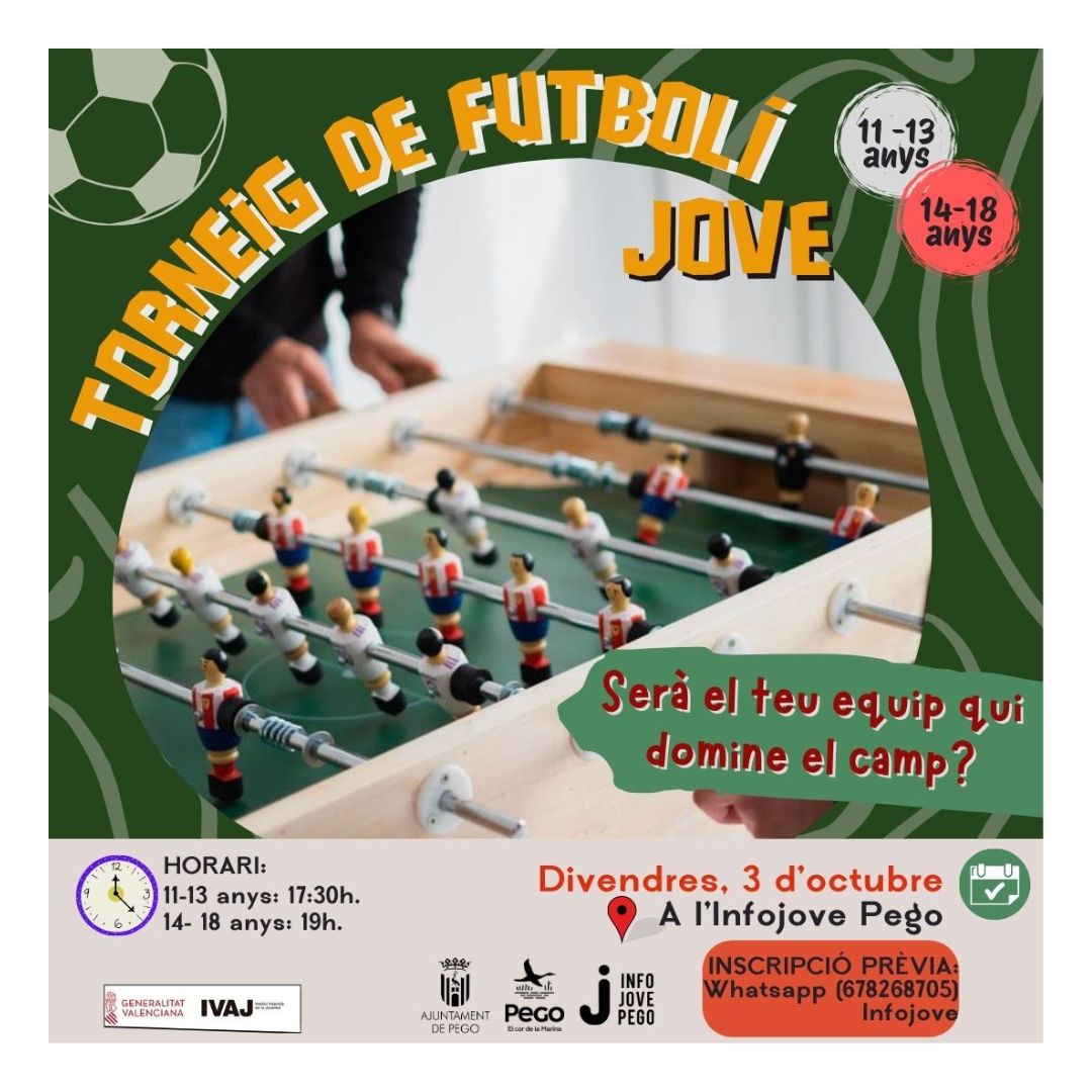 - 3 d’octubre – Torneig de Futbolí Jove (18 h) (inscripció prèvia)