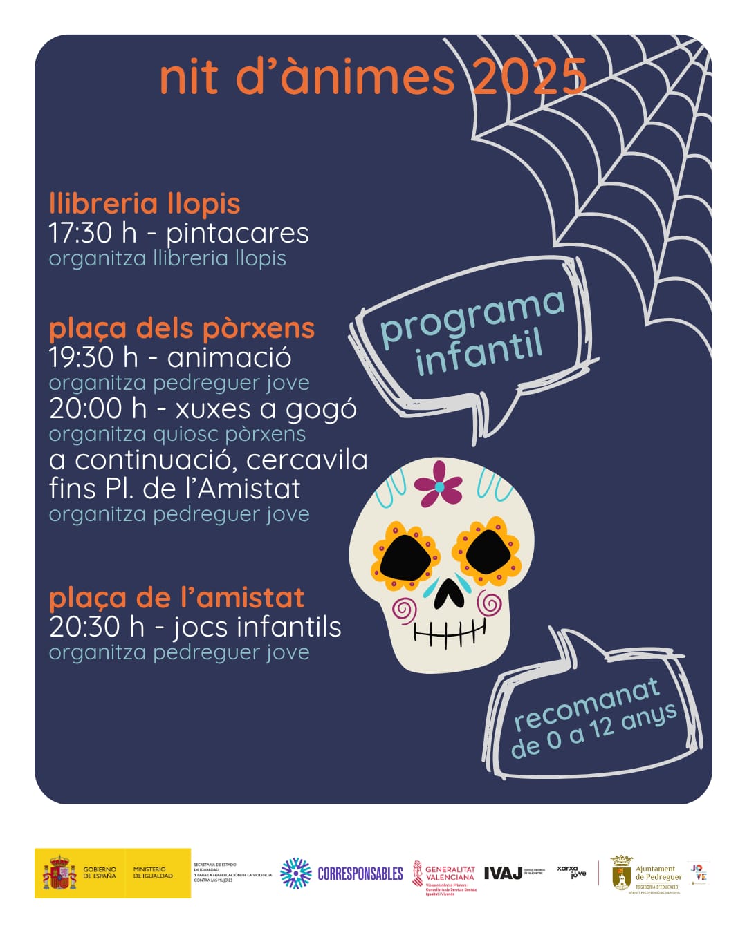 Arriba la nit de les ànimes, i la comarca s’ompli de misteri, llum i tradicions. Tallers, cercaviles, contacontes, música i activitats per a totes les edats ens conviden a viure aquesta nit màgica entre carabasses, espelmes i històries d’altres temps. Vine a viure l’encant i la màgia de la nit de les ànimes a la Marina Alta!