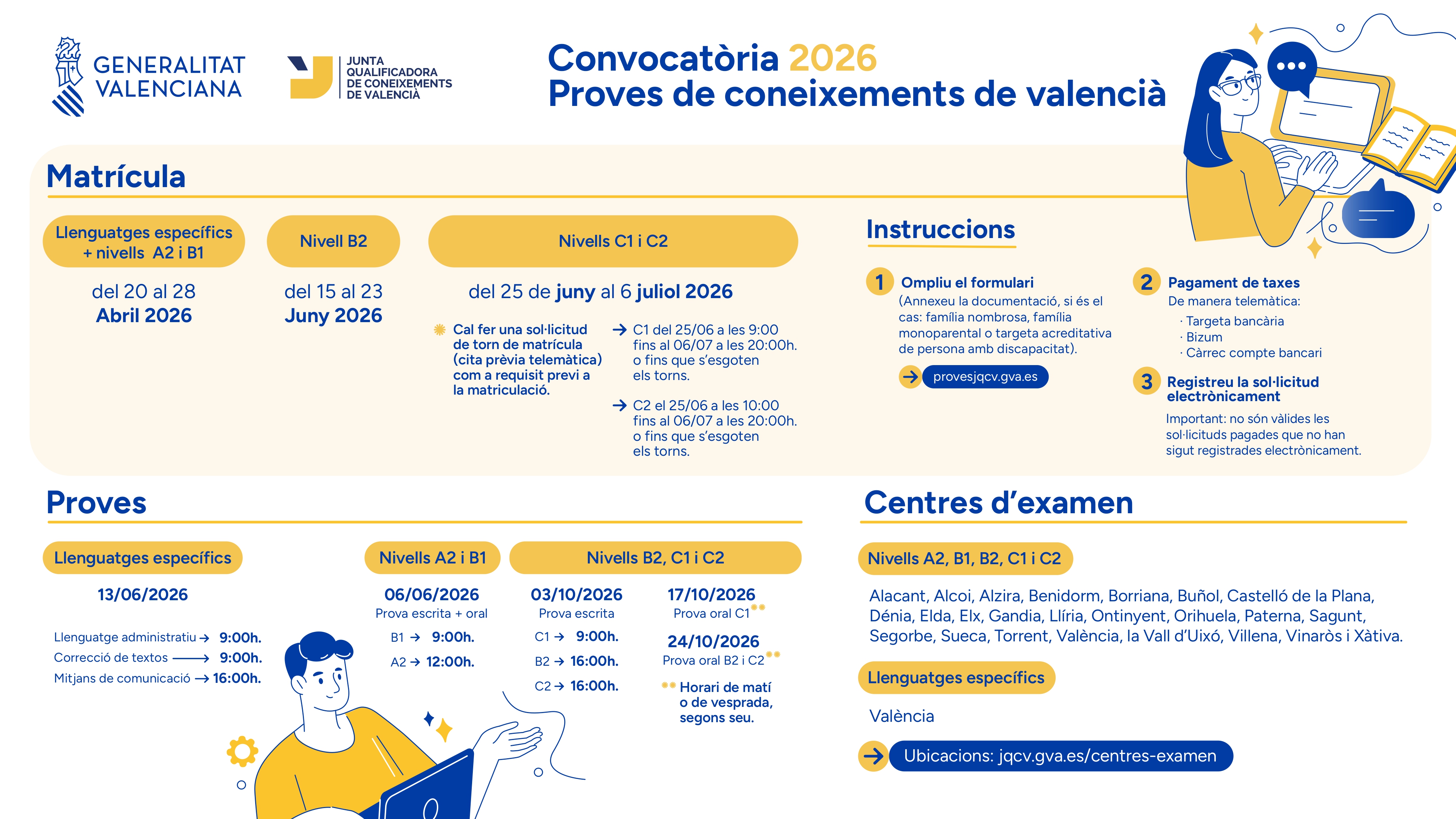 Consulta el calendari d'inscripció per als nivells A2, B1, B2, C1 i C2 de valencià.