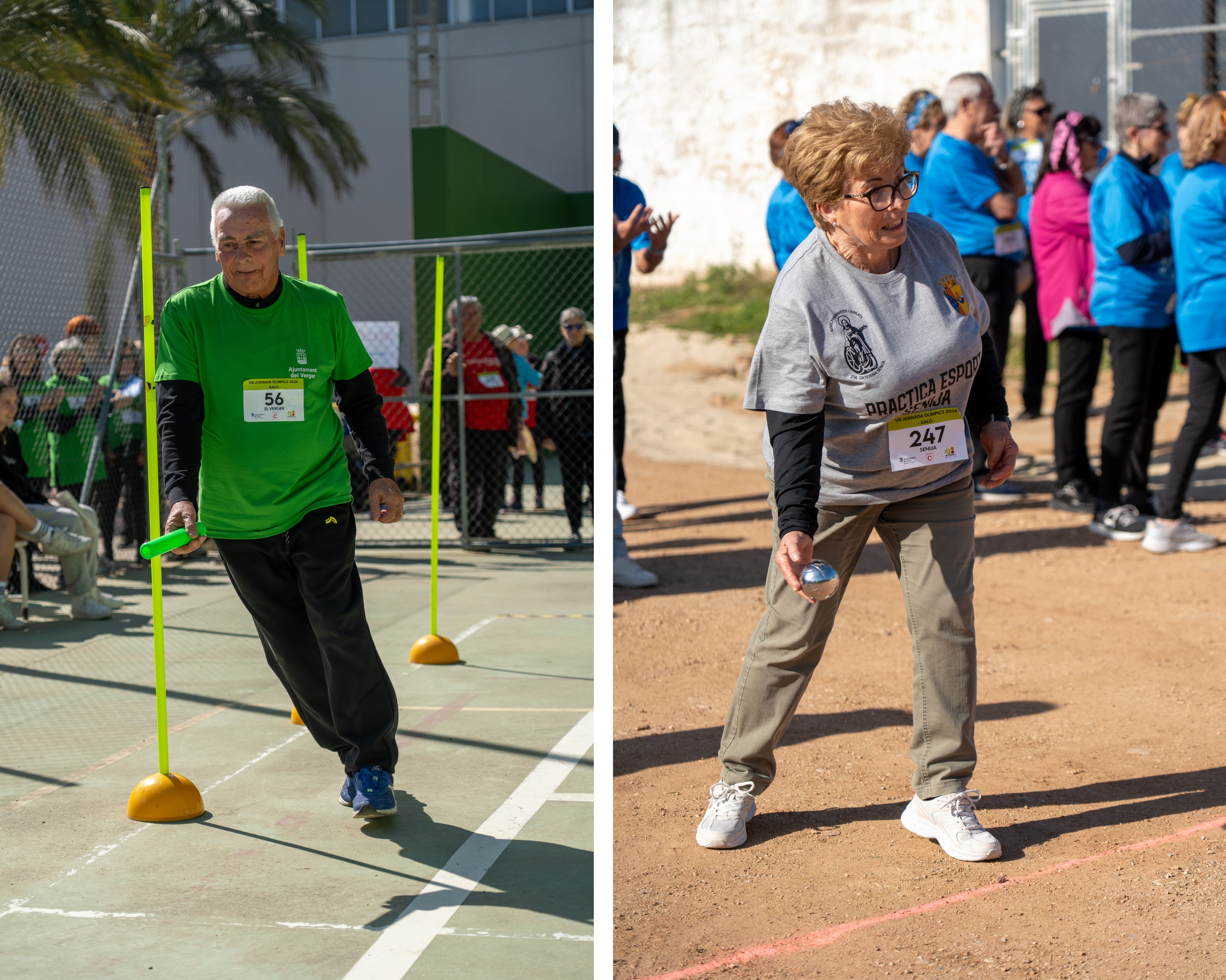 Després d'un bon escalfament per preparar el cos, s'han iniciat les proves, organitzades en diferents punts del poliesportiu de Xaló. Entre aquestes hi havia dues d'atletisme, una d'elles de cursa de relleus i altra de llançament de pes, en les que s'ha vist el bon estat de forma de la nostra gent gran. Una altra de les proves, i una de les preferides pels participants, ha estat el llançament de Birles, que ha posat a prova la seua punteria. Ja dins del pavelló, s'ha fet la quarta prova, que combinava un circuit d'habilitat en llançaments a cistella, tot un repte de coordinació i cooperació per als participants. La bona predisposició per passar-ho bé ha fet que les proves transcorregueren sense incidents i en una ambient de competició sana. A mig matí s'ha fet una aturada per carregar forces amb un esmorzar de coques, fruita i aigua, i després s'han continuat amb les proves que restaven.