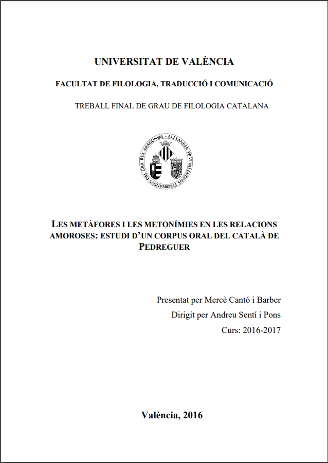 Les metàfores i les metonímies en les relacions amoroses: estudi d’un corpus oral del català de Pedreguer.