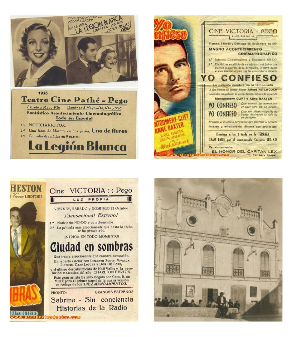 Imatges de www.prospectosdecine.com.Aquestes imatges ens mostren programacions del cine Pathé (dalt a la l'esquerra, anterior a la guerra) o Cine Victòria, que és com passaria a dir-se després de la guerra. Podem observar que les que es projectaven després de la guerra incloïen la projecció del NO-DO, un noticiari de propaganda franquista.