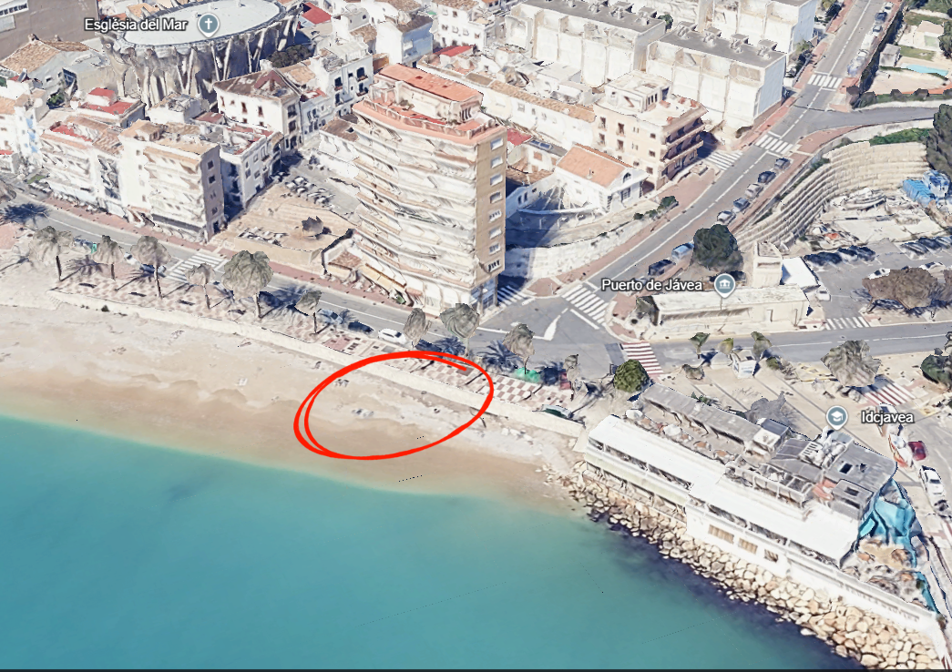 Vista des de dalta de la zona de la grava actualment.Seguirem passajant per la vora de la mar i arribarem a la platja del Benissero, on deu haver una altra construcció d'aquest tipus però no tenim evidències. Més avant, al primer muntanyar si que trobarem una estructura excavada i senyalitzada que correspondria a la bateria antiaeria següent: