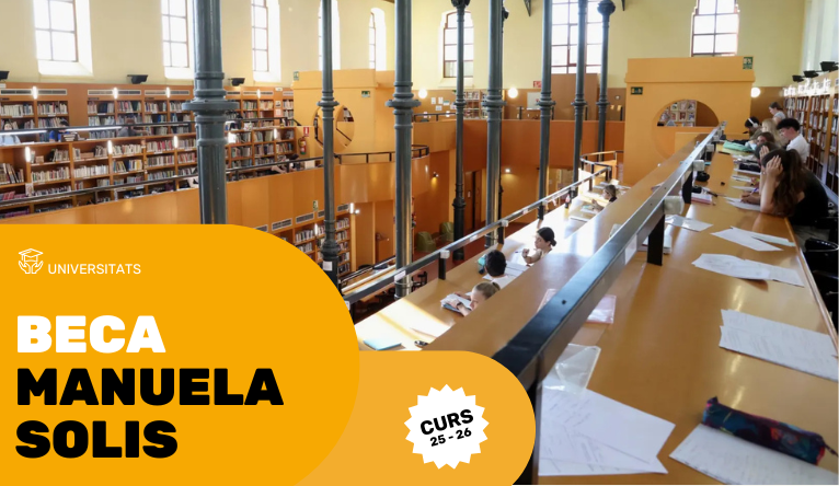 S'han convocat les beques Manuela Solís per a estudis del curs acadèmic 2025-2026. Dirigides a persones que estudien en alguna de les universitats del sistema universitari valencià o títols de grau en ensenyances artístiques superiors en els centres superiors d'ensenyances artístiques de la Comunitat Valenciana. Es poden sol·licitar del 14 de novembre fins al 15 de desembre.